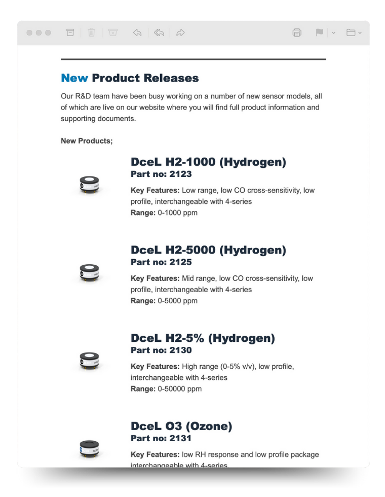 无论是传感器性能、包装还是测试程序的升级,作为新闻通讯订阅者,您都会第一时间了解。
