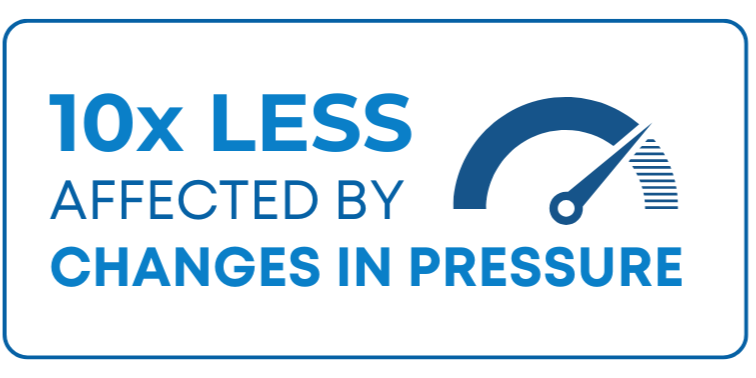 The S+4OXLFF is significantly less affected by changes in pressure when compared to other oxygen sensors, with an increase in output of typically 10 x less than others.